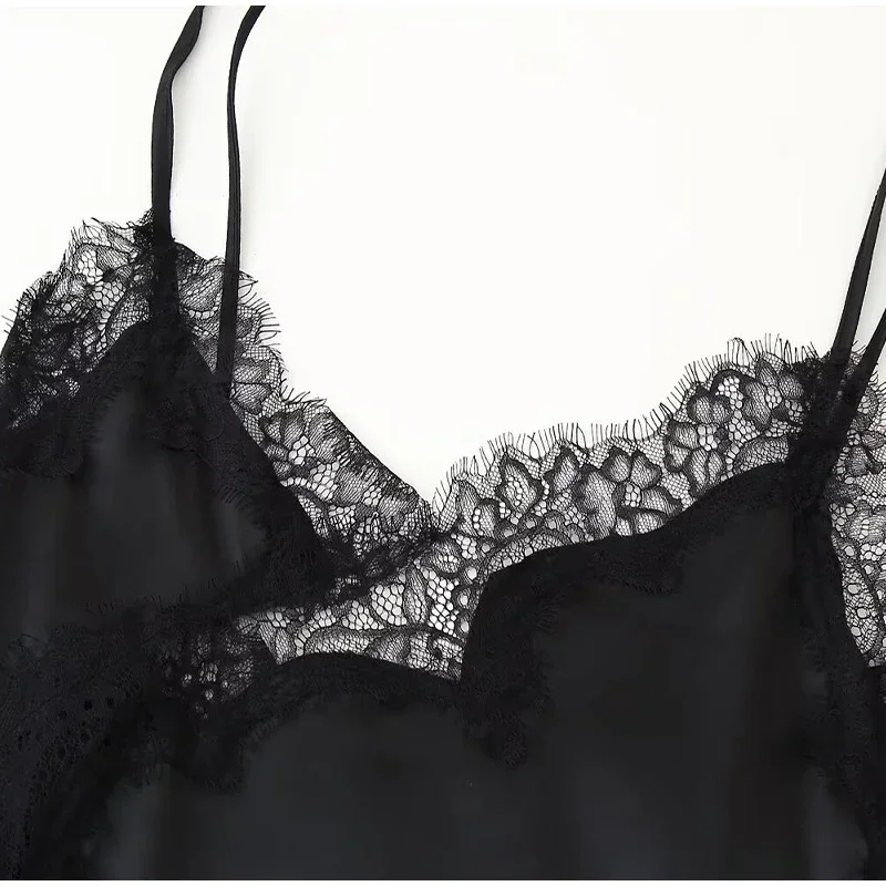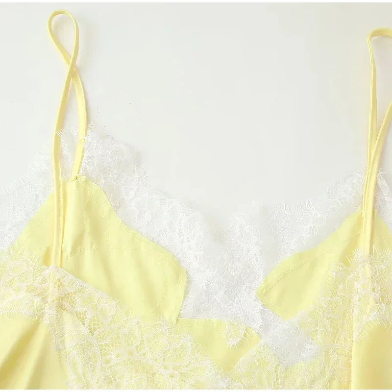 Con un elegante diseño de encaje y un moderno cuello en V, este vestido es perfecto para cualquier fashionista callejero.